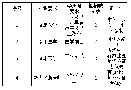 現(xiàn)因醫(yī)院業(yè)務發(fā)展需要,擬面向社會進行臨床醫(yī)學人才引進,計劃如下:
