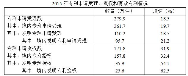 2015年,全國(guó)研究與試驗(yàn)發(fā)展經(jīng)費(fèi)支出14220億元,與國(guó)內(nèi)生產(chǎn)總值之比為2.1:100,其中基礎(chǔ)研究經(jīng)費(fèi)671億元。截至年底,全國(guó)共擁有有效專利547.8萬(wàn)件,其中境內(nèi)有效發(fā)明專利87.2萬(wàn)件,每萬(wàn)人口境內(nèi)有效發(fā)明專利擁有量6.3件。