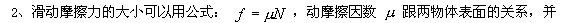 3、兩個物體間的滑動摩擦力的大小跟這兩個物體接觸面間的壓力大小成正比.
