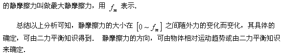 2、兩個物體相互接觸,當有相對滑動的趨勢,但又保持相對靜止狀態(tài)時,在它們接觸面上出現(xiàn)的阻礙相對滑動的作用力