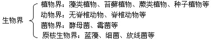 說(shuō)明:引導(dǎo)學(xué)生列舉不同的生物類型,邊列舉邊引導(dǎo)學(xué)生進(jìn)行對(duì)比,最后總結(jié)歸納出生物界的基本類群。