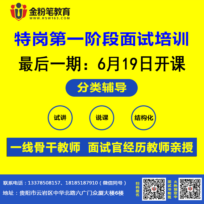 貴州特崗教師招聘分為兩個階段,第一階段僅面試,考生須通過結(jié)構(gòu)化面試、說課或者試講的形式備考特崗考試,不同的地市備考的形式不同;第二階段特崗教師招聘分為筆試與面試兩個階段,考生們得先通過筆試,再經(jīng)過面試才能被聘用;因此考生們需把握第一個面試階段,一次面試上岸!