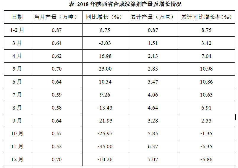 問題:2018年,中國合成洗滌劑產(chǎn)量位居第一的省份,其合成洗滌劑產(chǎn)量與陜西省之比約為: