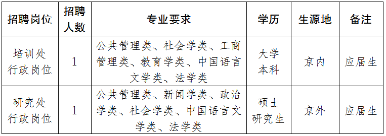 (四)應(yīng)屆生為2020年全國普通高等學(xué)校應(yīng)屆畢業(yè)生(不含定向、委培、部隊院校、兩年擇業(yè)期內(nèi)的未就業(yè)畢業(yè)生)。京外生源應(yīng)聘人員須符合申請辦理在京就業(yè)落戶條件,碩士研究生不超過27周歲(1992年2月1日以后出生);京內(nèi)生源應(yīng)聘人員須為北京市戶籍。