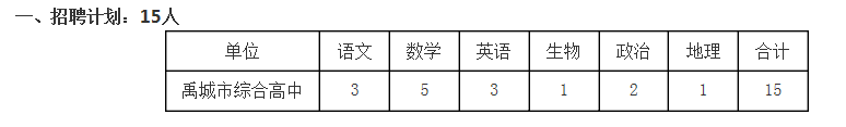 禹城市綜合高中是一所國有公辦高中,全額撥款事業(yè)單位,省級規(guī)范化學(xué) 校,省級花園式單位,省級衛(wèi)生先進(jìn)單位。經(jīng)禹城市委、市政府批準(zhǔn),2020 年面 向全國招聘高中教師 15 人,聘用教師列入市人事、財政編制。