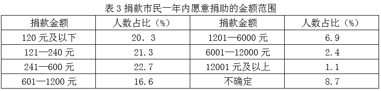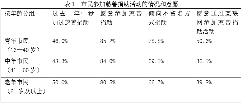 D. 不到一半的受訪中年市民愿意參加慈善捐助且傾向以不留名方式捐助