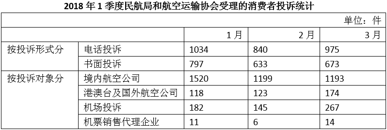 C. 2018年1季度民航局和航空運輸協(xié)會受理境內(nèi)航空公司投訴超過4000件